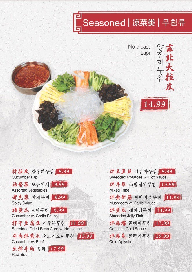 The menu highlights include tender lamb and beef skewers, flavorful taro pancake, and spicy beef hot pot, all praised for their quality and taste. Customers rave about the perfectly crispy Tangsuyuk and the vibrant Cucumber yangjangpi, bursting with a balanced sour, sweet, and spicy profile.
